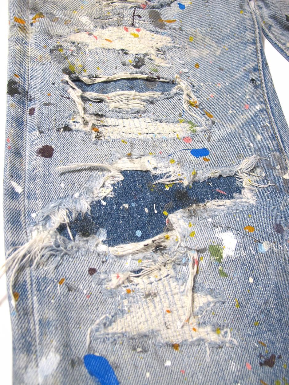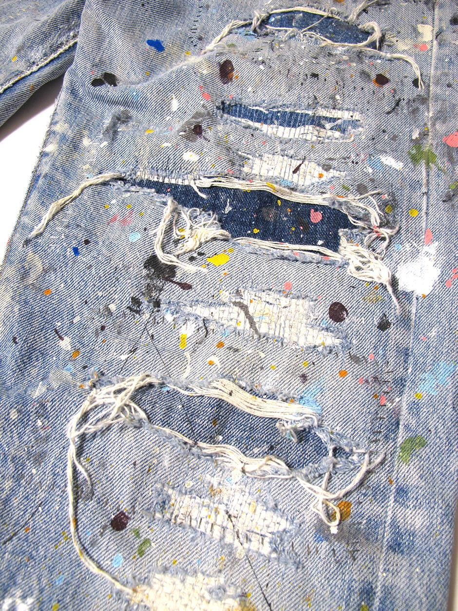 各所にハンドステッチ、リペアステッチさらに仕上げにはカラフルな多色ペンキを重ねて仕上げています。