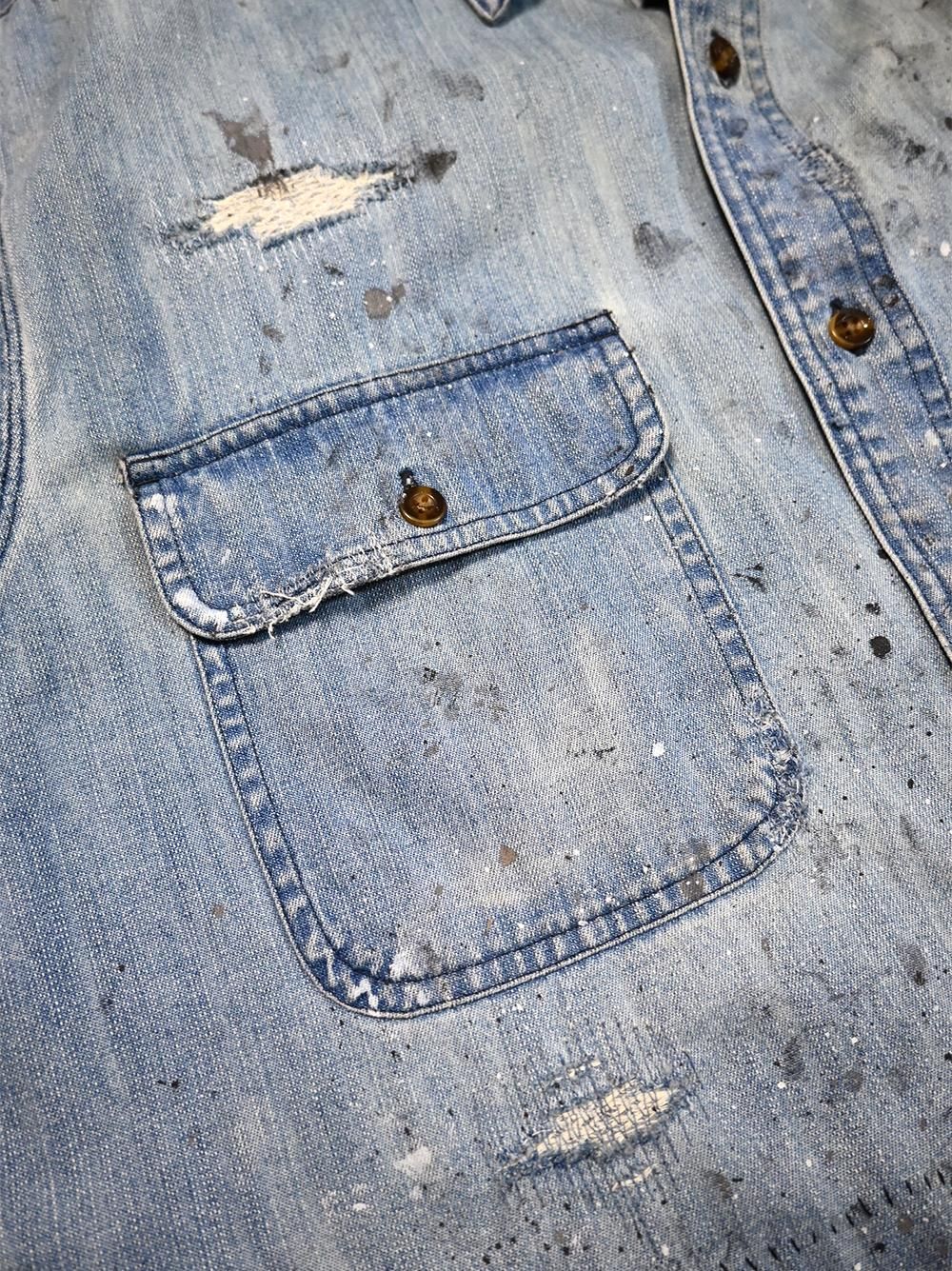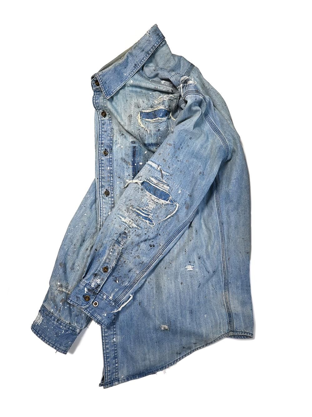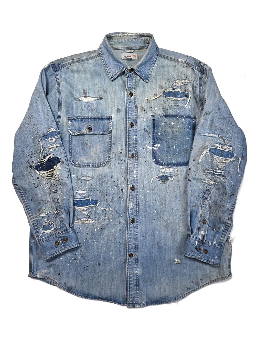 年代不明のカーハートデニムワークシャツをOVERDESIGNがリペア&リメイクした逸品。