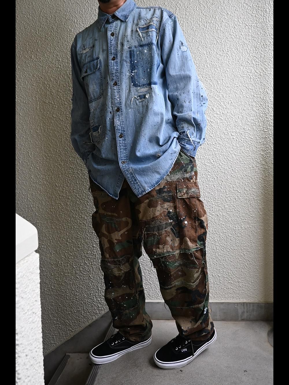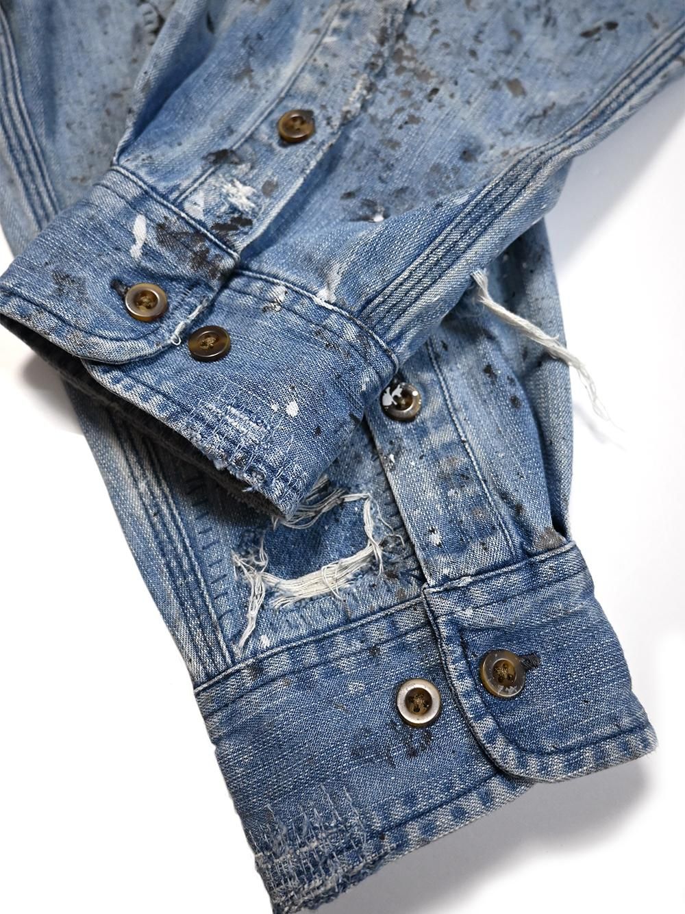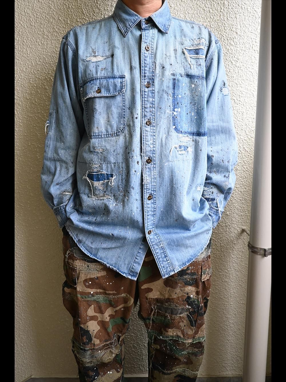 年代不明のカーハートデニムワークシャツをOVERDESIGNがリペア&リメイクした逸品。