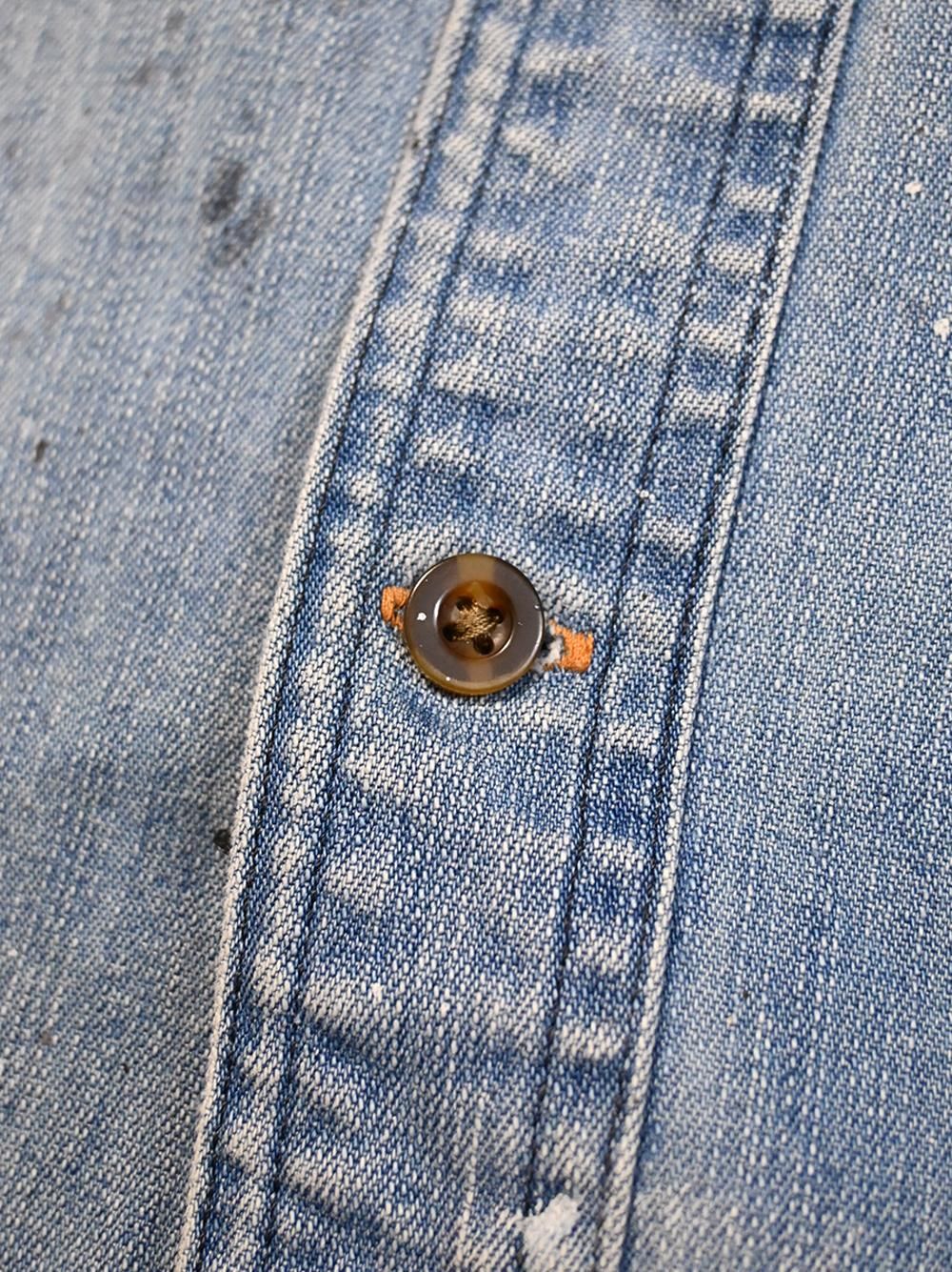 生地はしっかりした厚めのシャンブレーデニム生地に薄い色落ちが雰囲気ある一着です。