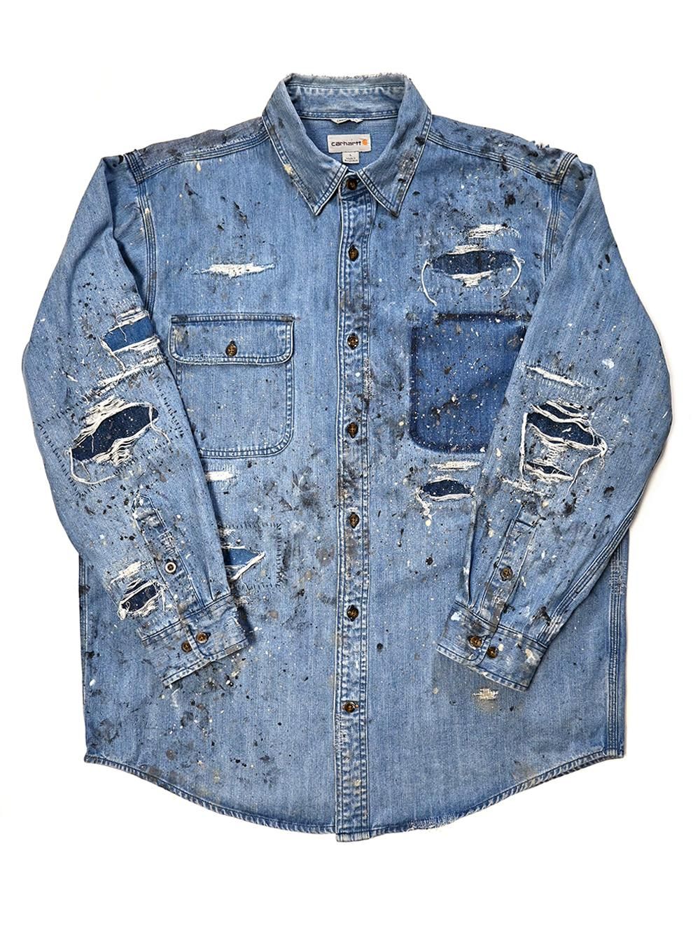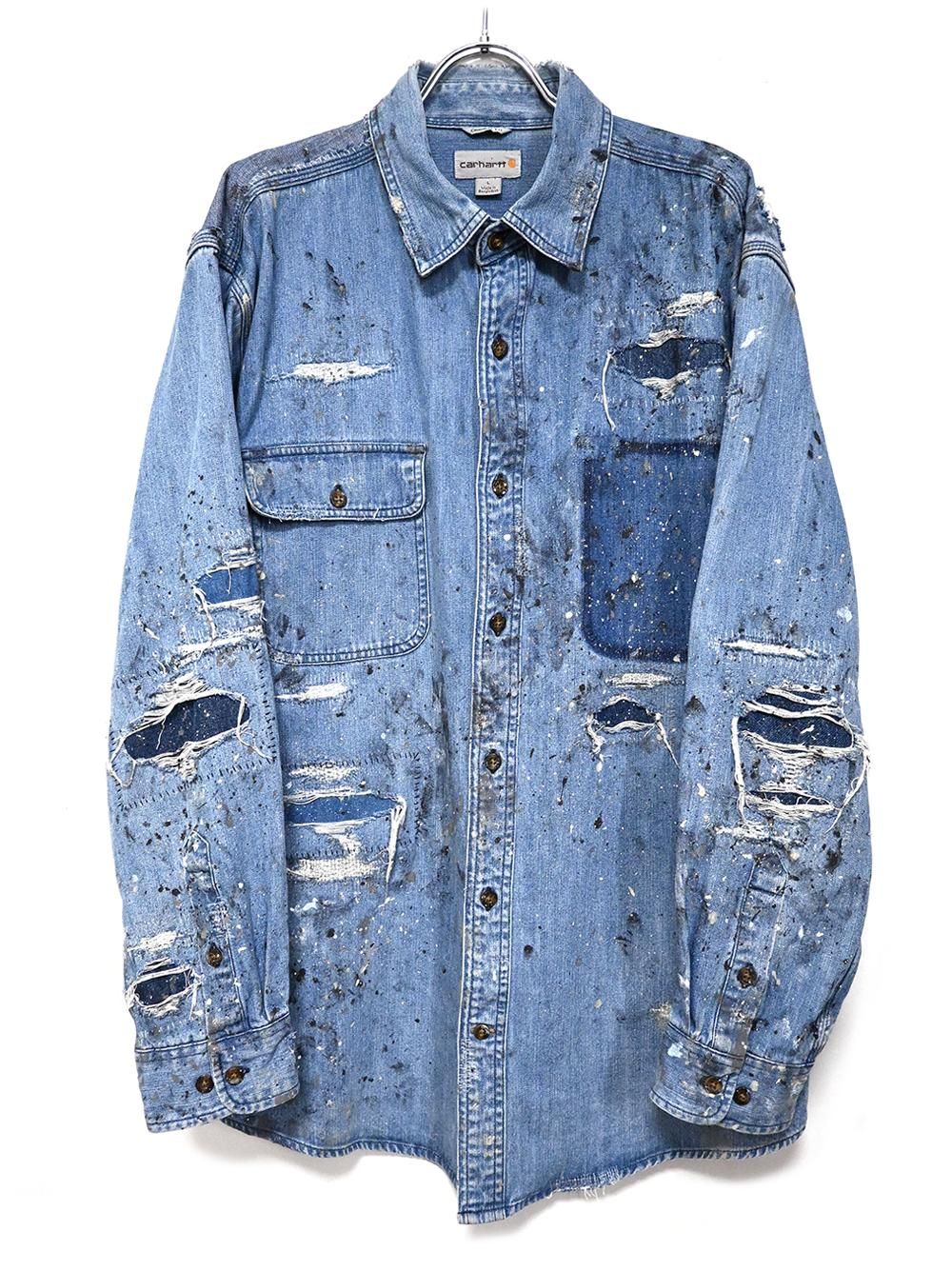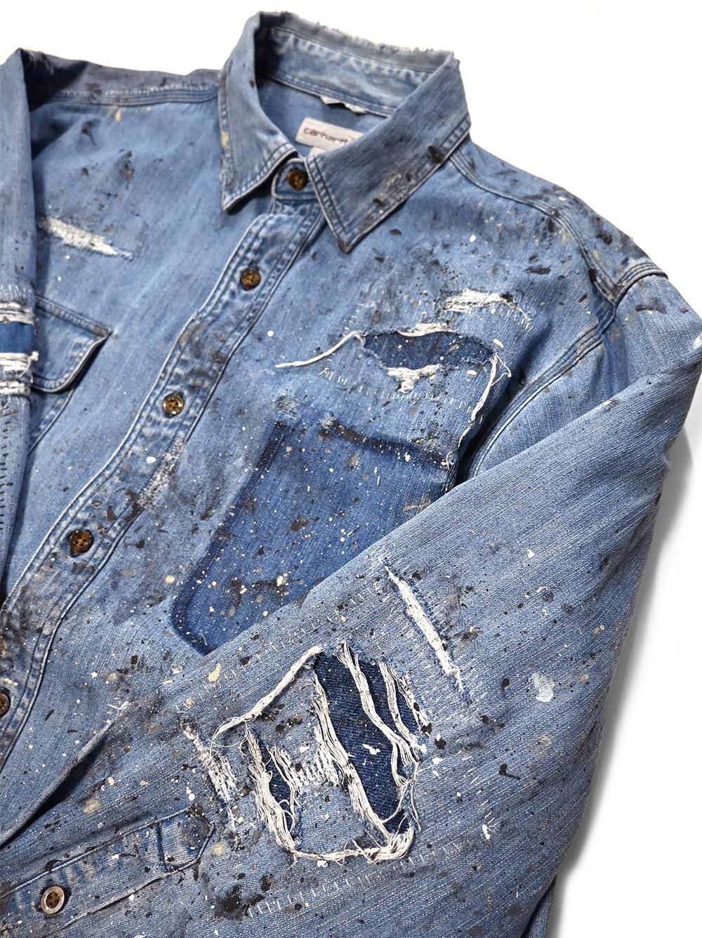 年代不明のカーハートデニムワークシャツをOVERDESIGNがリペア&リメイクした逸品。