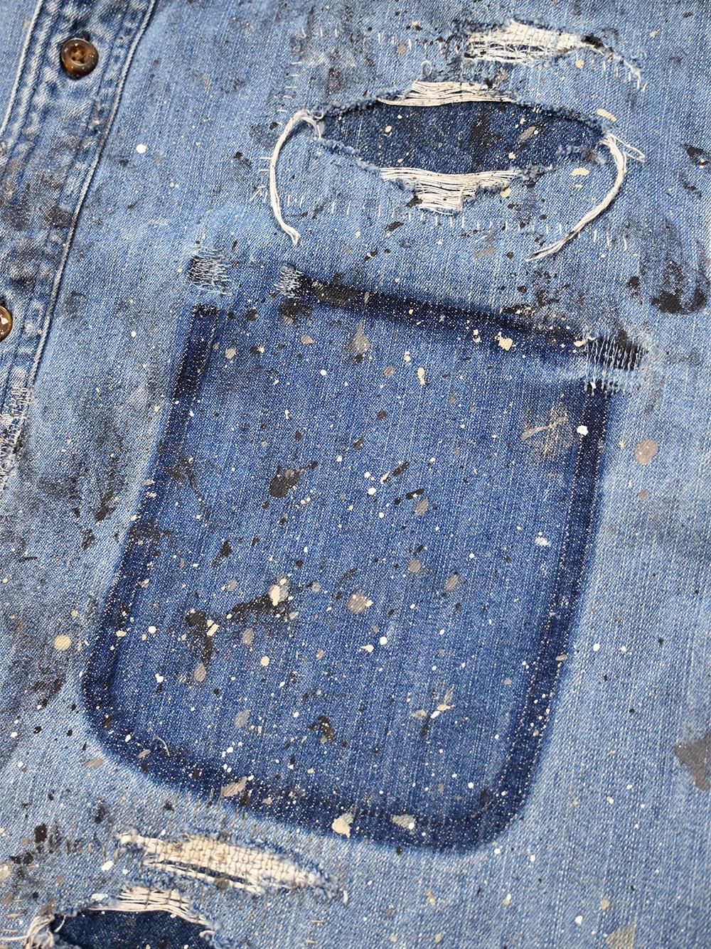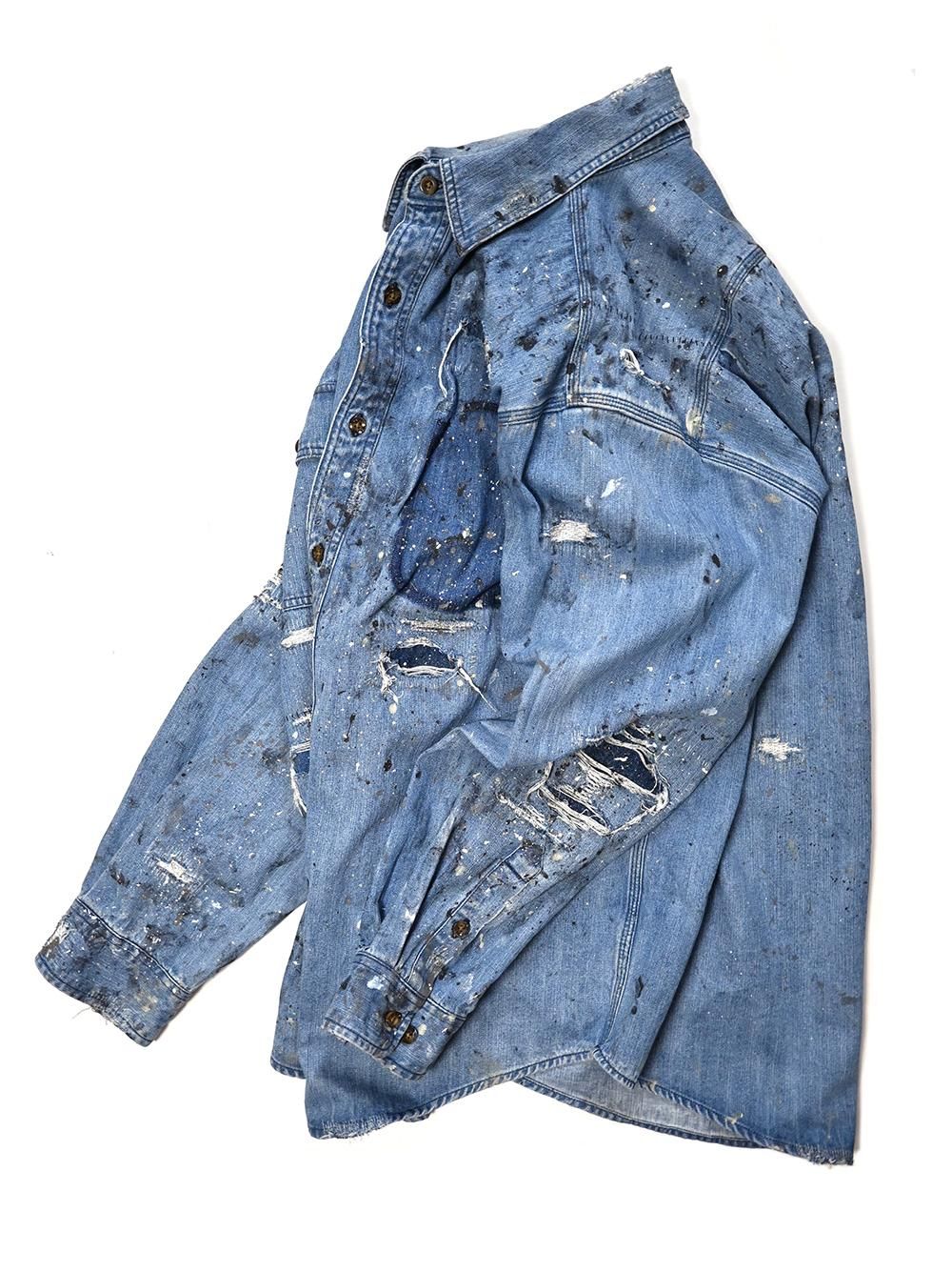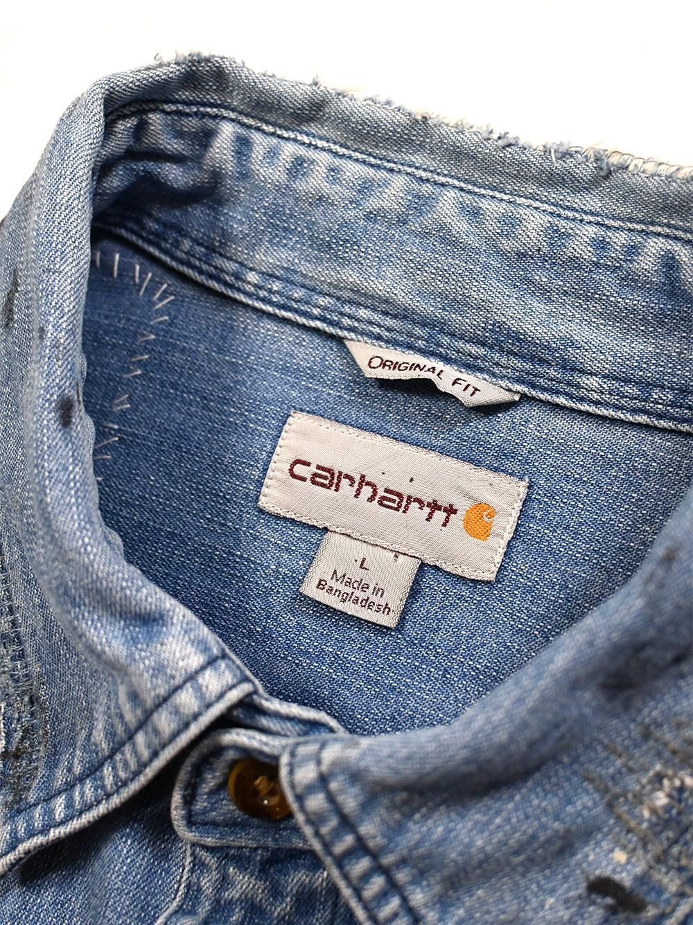 年代不明のカーハートデニムワークシャツをOVERDESIGNがリペア&リメイクした逸品。