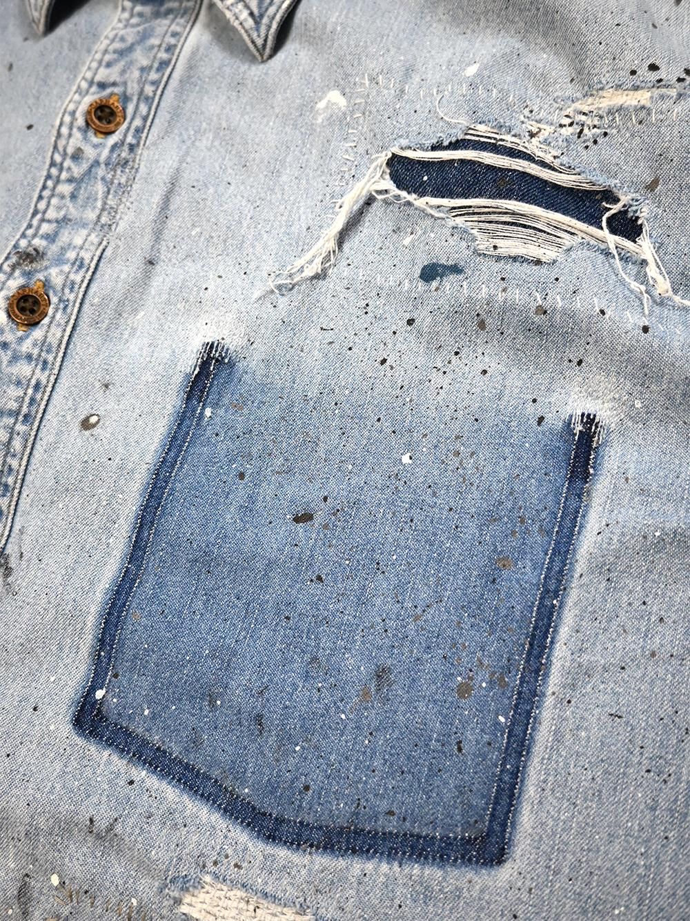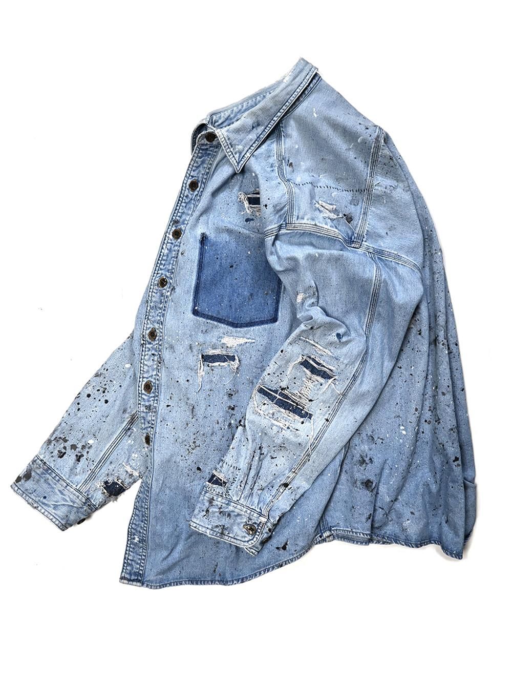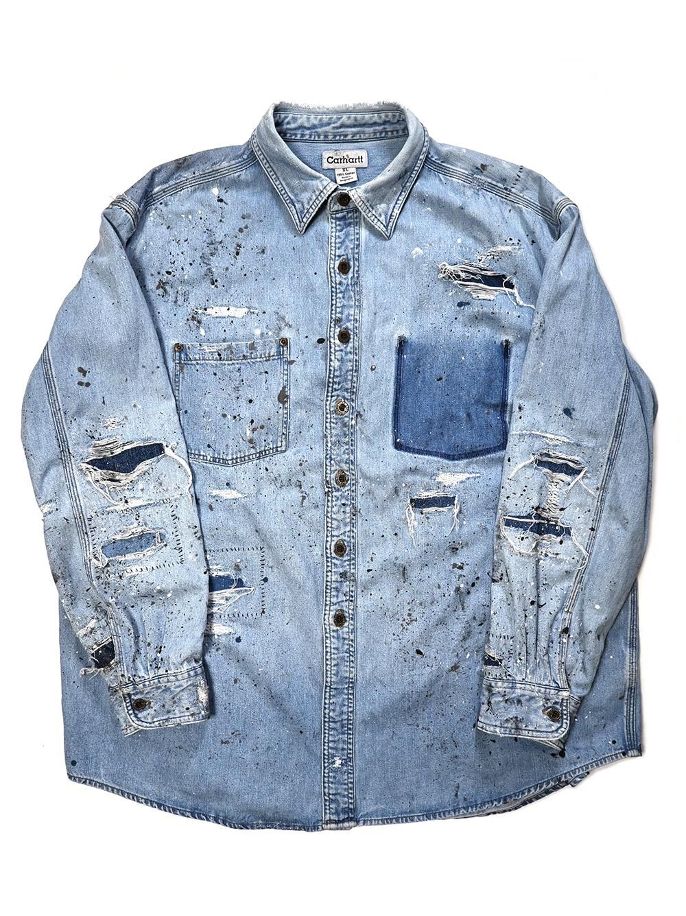 年代不明のカーハートデニムワークシャツをOVERDESIGNがリペア&リメイクした逸品。