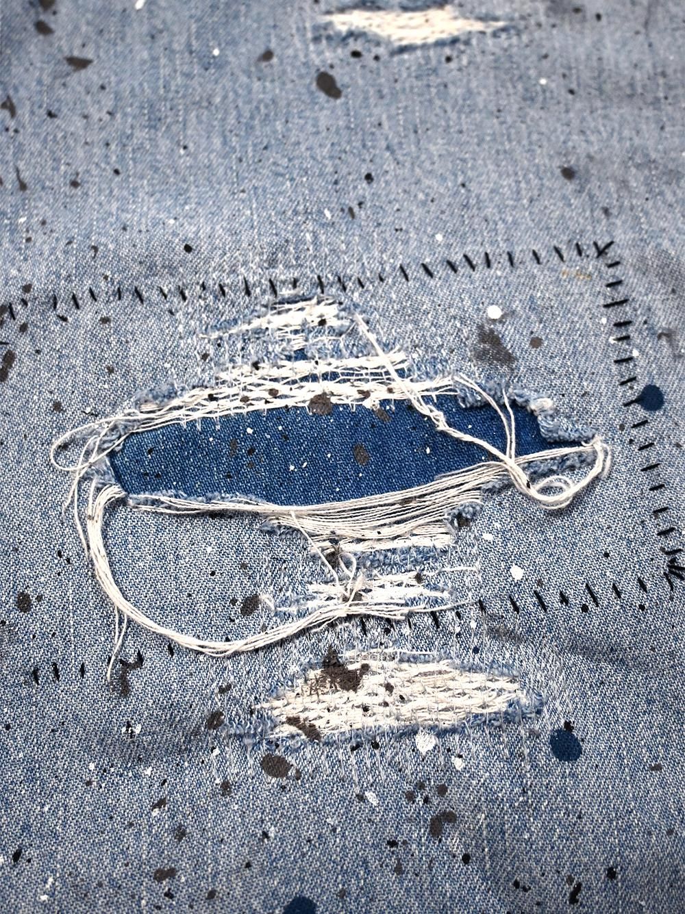 当て布には多種類のUSEDのインディゴデニムを使用。