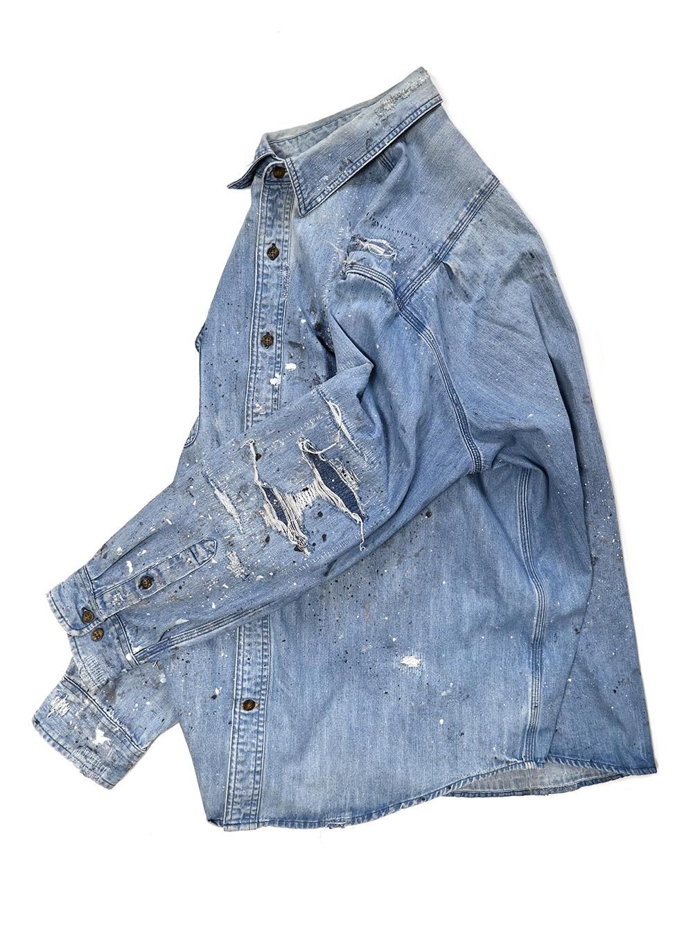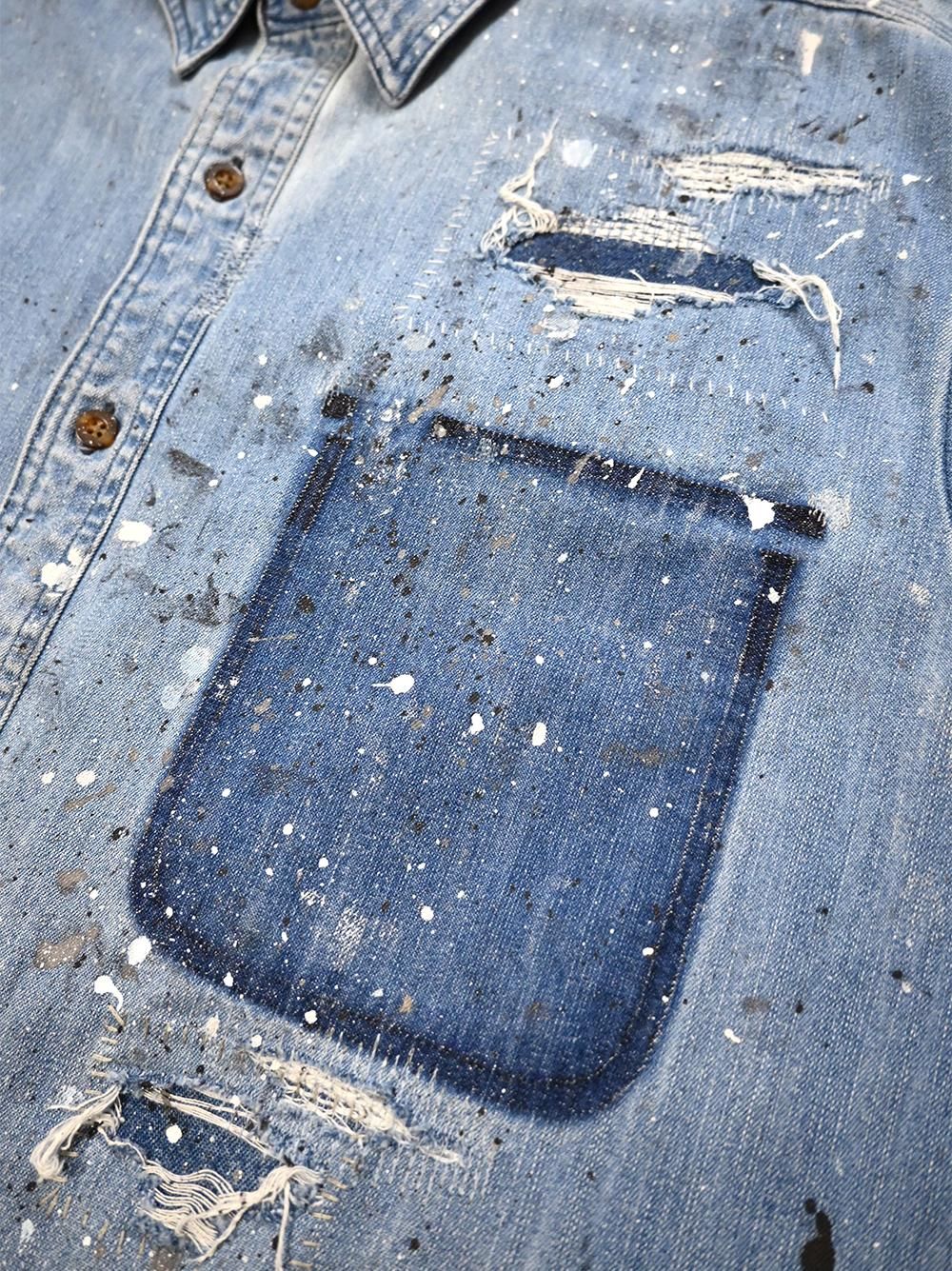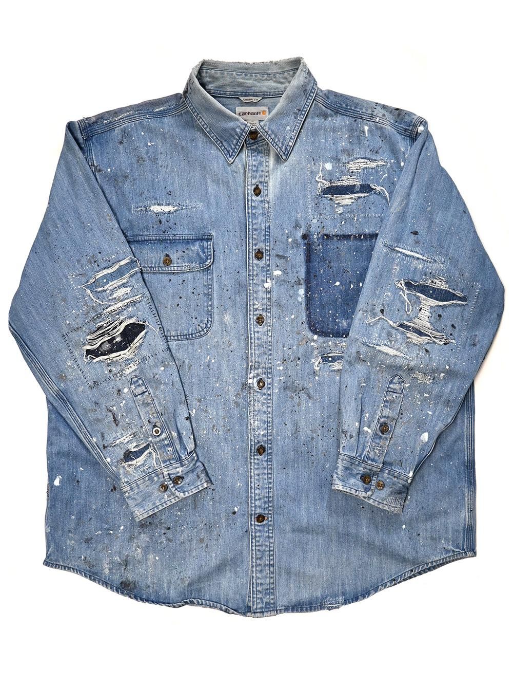 2014年のカーハートデニムワークシャツをOVERDESIGNがリペア&リメイクした逸品。