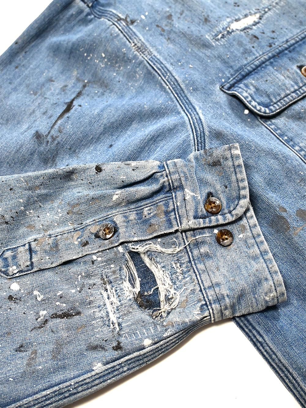 生地はしっかり目のシャンブレーデニム生地に程よい色落ちが雰囲気ある一着です。